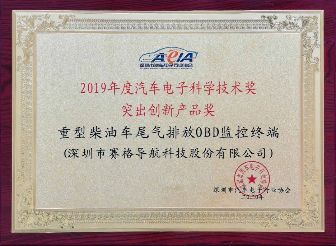 9月12日,由深圳市汽车电子行业协会主办,主题为“拥抱5g,创新发展——立足大湾区,跨入新十年”的2020中国(深圳)国际汽车电子产业年会暨2019年度汽车电子科学技术奖颁奖典礼在深圳隆重举行。赛格导航旗下产品“重型柴油车尾气排放obd监控终端”凭借业内领先的技术,斩获2019年度汽车电子科学技术突出创新产品奖。